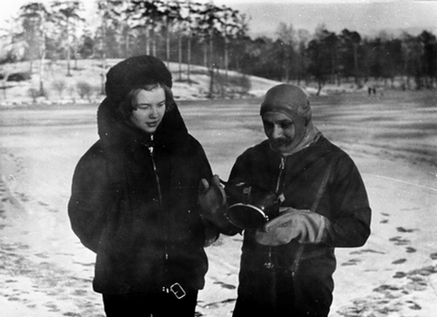 1954 год. Похороны моего дальнего родственника. Процессия движется со стороны города к Шуваловскому кладбищу. Полагаю, это Выборгское шоссе.