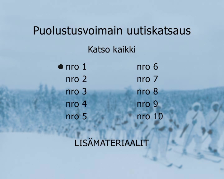 Ксения, спасибо! Я через некоторое время понял, что вопрос мой дурацкий. Я почему-то подумал, что фильм Finland Fights выложен где-то в другом месте, а оказалось, что это один из фильмов на 2-м диске Talvisodan Katsaukset. Чтобы больше не было подобных вопросов выкладываю содержание обоих дисков в виде скриншотов меню.