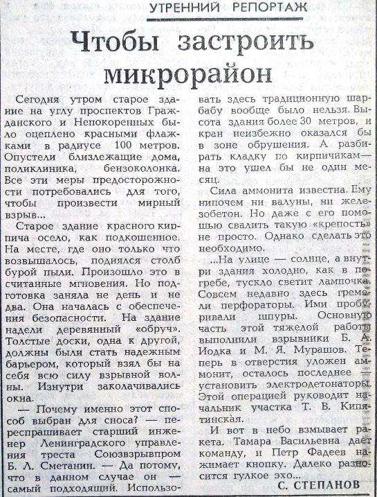 Газета "Вечерний Ленинград" от 14.07.1982, посвятила печальному событию - окончательному сносу - свою заметку: