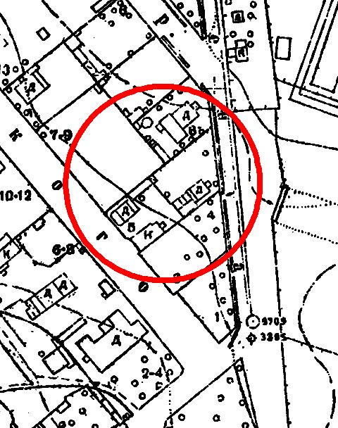 Пересечение Политехнической, Раевского, Бенуа и трамвайное кольцо -это разные точки. Могила Карла-Эмилии как раз таки находилась на пересечении улиц. Точка могилы-памятника показана на архивных картах. На планшете треста ГРИИ 46-го года присутствуют аж два или три! девянных дома (обвел красным), попадающих в пределы нынешнего трамвайного кольца. О каком из них речь?