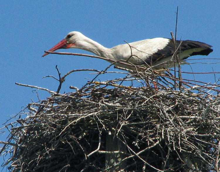 Из статьи в Википедии узнал, что аисты высиживают яйца поочереди: самец днём, а самка – ночью. Так что это самец-наседка решил размять ноги…