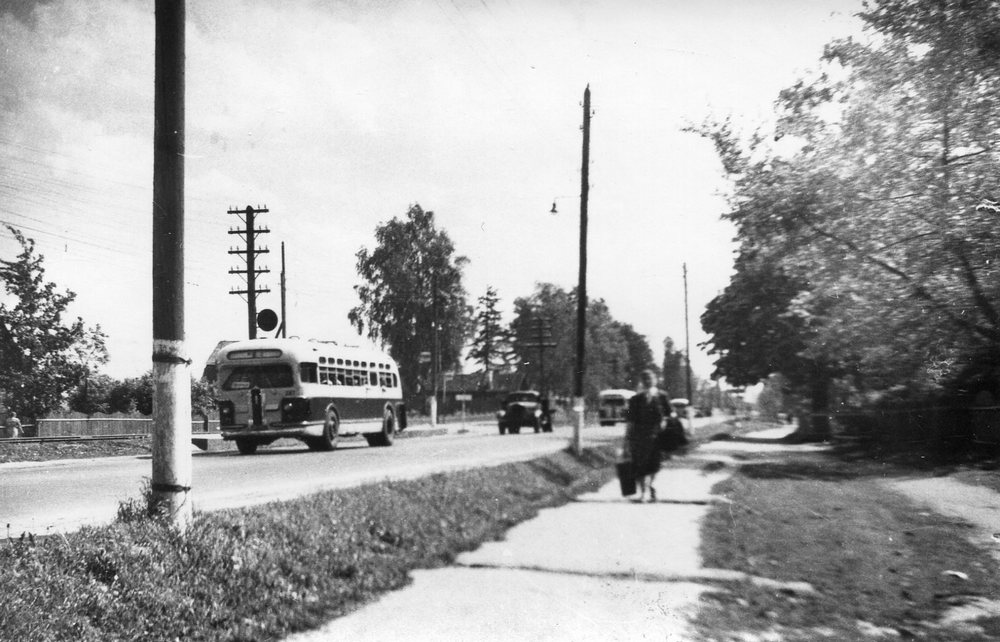 1954.Выборгское шоссе в районе Озерков.Автобус едет в Парголово.