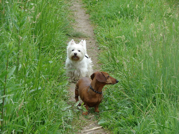Такса по холодам на большие расстояние не гуляет– шерстка маленькая...а вот вестик с большим удовольствием гуляет по паре часов...по луговому парку