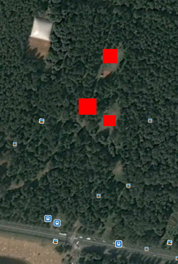 Дети играют на дорожке (средний квадратик), и, скорее всего, на полянке севернее, справа от этой же дороги. Может быть на ближней полянке, у которой раньше стоял зеленый сортир.