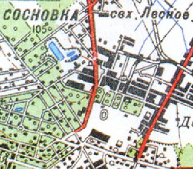 На этой карте есть ещё один совершенно бесподобный ориентир - в те времена Курчатова шла прямо до Бенуа, а не сворачивала как сейчас к Политехнической, и выходила точно к перекрёстку - пересечению четырёх улиц.