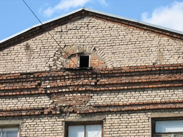Другие дома довоенной постройки оштукатурены, а этот наверное оставлен как памятник.