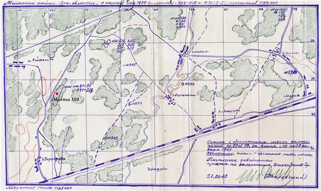 0,5 км ю.-в. д. Поречье; 0,8 км с.-з. оз. Глухое; 1 км зап. оз. Глухое; 1 км зап. оз. Долгое; 1 км от д. Малукса; 1 км с.-в. от д. Лодва; 1 км с.-з. д. Поречье; 1 км ю.-в. оз. Глухое; 1,5 км с.-в. д. Карбусель; 1,5 км с.-в. ст. Погостье; 1,5 км юж. оз. Глухое; 1,5 км ю.-з. д. Виняголово; 1,5 км ю.-з. д. Малукса; 10 км с.-в. ст. Погостье; 1-ый городок [им. Кирова]; 2 км от д. Карбусель; 2 км от ст. Погостье; 2 км с.-в. 3-х уч. ж/д; 2 км сев. д. Карбусель; 2 км ю.-в. д. Вороново; 2 км юж. д. Вороново; 2 км ю.-з. д. Вороново; 2 км ю.-з. от ст. Погостье; 2,5 км вост. ст. Погостье; 2,5 км ю.-з. ст. Погостье; 3 км вост. д. Карбусель; 3 км ю.-в. д. Малукса; 3 км юж. д. Вороново; 3 км ю.-з. д. Назия; 300 м вост. оз. Глухое; 300 м сев. оз. Барское; 300 м ю.-в. пл. Русановка; 300 м юж. оз. Круглое; 300 м юж. д. Поречье; 4 км юж. ст. Погостье; 500 м юго-вост. Русановки; 500 м сев. ж/д р. Назия, кл. №2; 6 км ю.-з. д. Вороново; 7 км ю.-в. д. Вороново; 700 м вост. д. Поречье; 71 км Кировской ж/д (тж.: ППГ 744 71 км ж/д;); 8 км с.-з. оз. Глухое; 800 м зап. д. Карбусель; Березовский с/с; болото Гороховое (ошибочно в документах: болото Горохово; оз. Гороховое); болото Малуксинский мох (болото Малукс. мох; ошибочно в документах: Малуксенский лес; Малуксинский лес); болото Соколий мох (Ленинградская обл., Соколий мох; ошибочно в документах: болото Соколиный мох); брат. могила (без указания места!!!); вост. 1 км д. Карбусель; вост. оз. Глухое; высота "Доброе" [?, возможно, с. Доброе или оз. Долгое]; высота 314 [?]; высота 34,9 (отм. 34,9); высота 38,2 (отм. 38,2); высота 52,2 (отм. 52,2); высота 55,1 (тж.: Мгинский р-н, высота 55,1; отм. 55,1); высота 57,2 (отм. 57,2); высота 58,2 (варианты: Ленинградская обл., Мгинский р-н, отметка 58,2; отм. 58,2); высота 59,8, д. Карбусель; высота 59,9; высота 60,2 (отм. 60-2); высота 61,6; высота 64,6; высота 65 (отм. 65); высота 65,5 (тж.: кв. 23-06 отм. 65.5); гора Пушечная (также: высота Пушечная; Ленинградская обл., Мгинский р-н, гора Пушечная; ошибочно в документах: д. Пушечная); д. Арбузово; Бараки (ошибочно в документах: д. Бараки; д. Барки); д. Березовка (тж. п. Березовка, с. Березовка); д. Буйбково [?, возможно, д. Марково]; д. Верхняя Назия (варианты: д. В.; д. В. Назия); д. Виняголово (тж.: Виняголово без "деревня"; с. Виняголово; ошибочно в документах: д. Венягово; Ленинградская обл., Мгинский р-н, д. Винягово); д. Войтолово (тж. ошибочно в документах: д. Волково); д. Вороново (варианты: Ленинградская обл., Мгинский р-н, д. Вороново; Вороново без "деревня"; с. Вороново); д. Гайтолово (варианты: Гайтолово без "деревня"; с. Гайтолово); с. Доброе [Тосненского района]; д. Дубасово [?, возможно, д. Карбусель или Дубовик Тосненского района]; д. Ерзуново [в документах ошибочно: д. Озерово]; д. Зенино [Тосненского района]; д. Карбусель (также: Ленинградская обл., Мгинский р-н, д. Карбусель; ошибочно в документах: ст. Карбусель; с. Кабрусель; д. Кабресель; д. Карадосия); д. Килози; д. Кондуя (тж. ошибочно в документах: д. Кандул); д. Лезье (с. Лезье; Лезье без "село"; ошибочно в документах: д. Лези; д. Лезна; д. Лезно; Лезна — в последних трех случаях может иметься в виду река Лезна); д. Лодва (тж.: с. Лодва; Ленинградская обл., Мгинский р-н, д. Лодва; ошибочно в документах: д. Ладва; д. Ледова; д. Лодья; Ленинградская обл., с. Лодва); д. Малиновка [Тосненского района]; д. Малукса (тж.: п. Малукса; Малуксинское дивиз. кл.; ошибочно в документах: м. Малукса); д. Михалево (тж. ошибочно в документах: д. Михайлово; д. Михалево (Поречье); д. Михойлово); д. Мишкино (тж. ошибочно в документах: д. Лишкино; д. Мишкино-Поредье); д. Московская Дубровка (вариант: Моск. Дубр