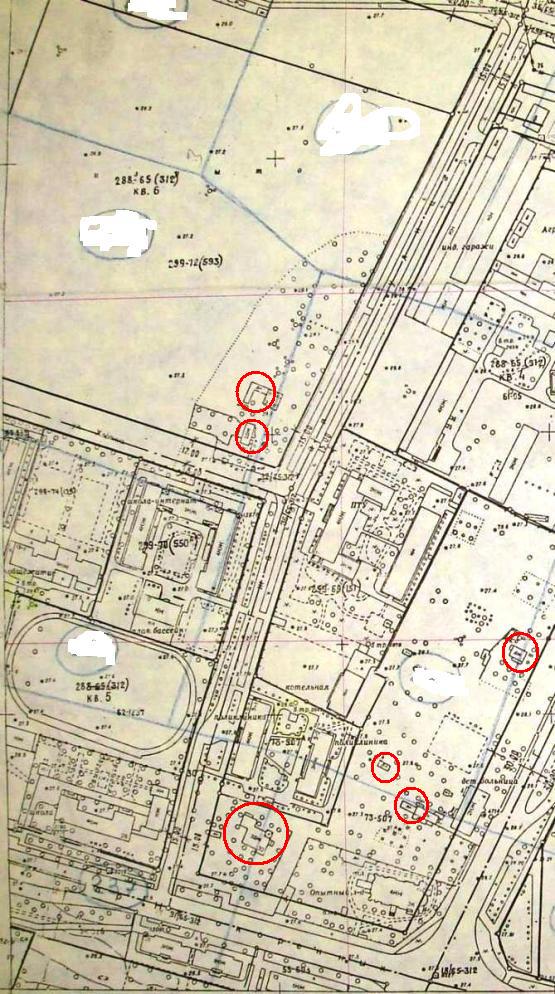 Ещё раз посмотрел планы. Обнаружилось, что на плане (примерно 1992 г.) есть развалин неких сооружений за АТС, которые вообще отсутствуют на плане 1974 г.