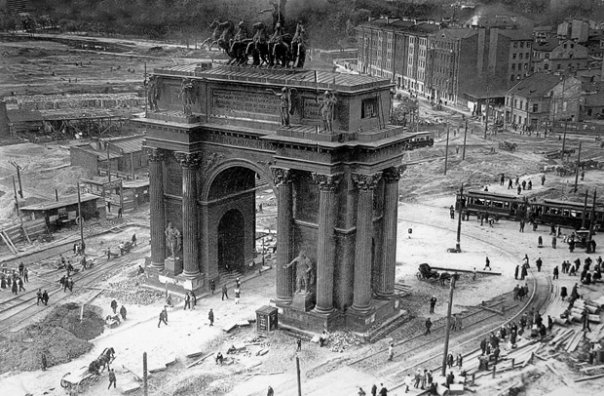 До реконструкции площади в конце 1920-х здесь существовало два оборотных кольца: гор.трамваи разворачивались вокруг круглой клумбы, а поезда Оранэлы - вокруг Нарвских ворот.