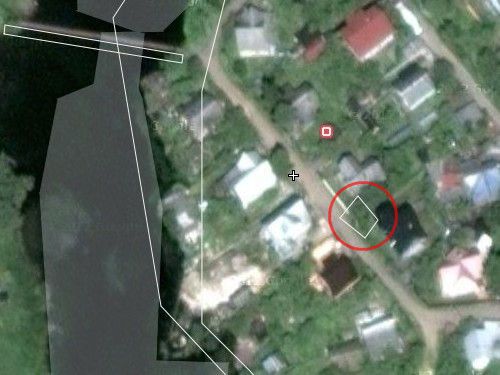 Нет, что Вы. Я перенес контур как раз метров на 30 севернее, на огороды между домами. Переключитесь на вид со спутника и приблизьте. Теперь, после Вашего уточнения, я хорошо вижу этот ДОТ на космоснимке, и как раз на него и нарисовал метку. Разве что прямоугольник, как обычно, несколько больше ДОТа, иначе без сильного приближения его не увидишь.