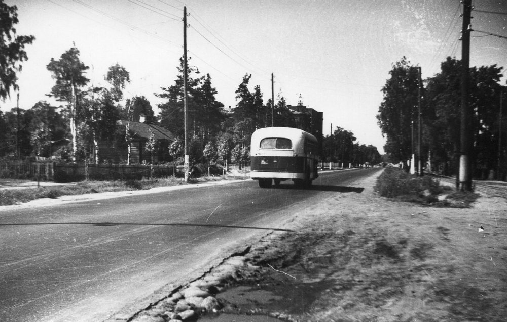 1954.Выборгское шоссе в районе Озерков.Автобус едет в Парголово.