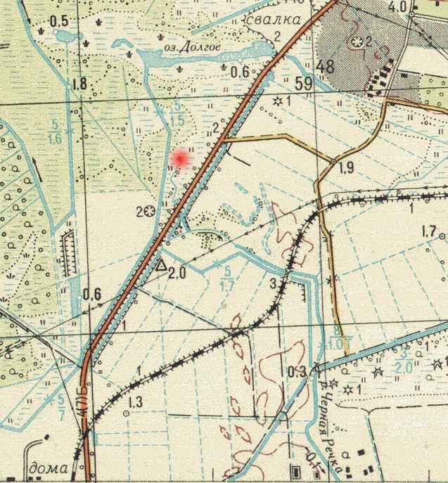 Карта из разряда сомнительных. Хорошо, насыпь нарушила водосбор, но куда тогда пошла вода из озера? Я думаю канава для Ч.р. под насыпью все-таки была.