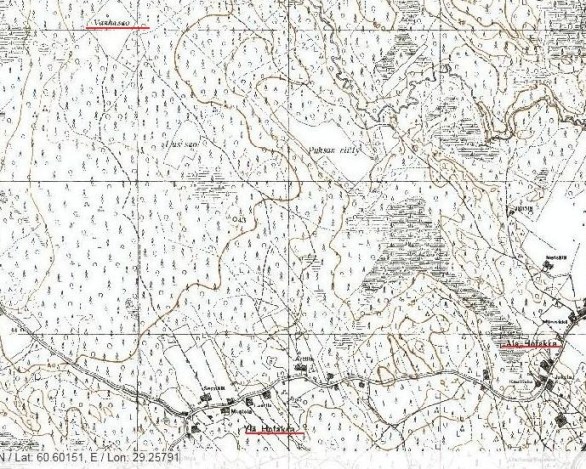 Скажите, пожалуйста, что такое Vanhasuo? 46 пехотный полк 26 августа наступал на Ала-Хотака и Юля-Хотака с севера от Хейкурила. Ближе к Хотакам часто упоминается Vanhasuo. Скорее всего это болото. Но какое? Означенные на современной карте Ториковское и Камышинка не очень подходят по расстоянию. На нашей карте 1941 такого названия вообще нет. Может так обозначался лес, примыкающий с севера к Хотакам? Он весь заболоченный.