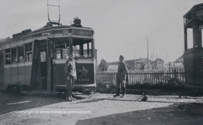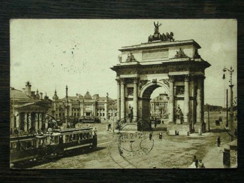 На открытке-фотографии со стороны деревянного моста, по которому, как мне представляется, проходила линия Оранэлы у Нарвских ворот, видна почему-то только одна колея и нет контактного провода. При этом брусчатка мостовой уложена, т.е. строительство завершено.