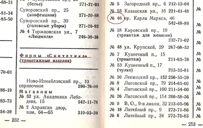 Всё же методом последовательных приближений нашёл, что по состоянию на 1 января 1980 г. там был магазин №46 фирмы "Синтетика" (трикотажные изделия). И сразу вспомнил разноцветные джемпера и кофты в витринах