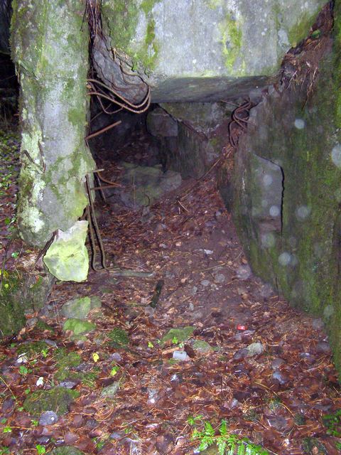 Между этими двумя дотами обнаружен бетонный колодец глубиной метра три, со скобами-ступенями. Внизу в колодец выходит труба сечением наверно сантиметров 10. Труба по направлению идет к ближайшему к колодцу доту. Предположили, что возможно это электрический колодец, а труба предназначена для протаскивания кабеля.