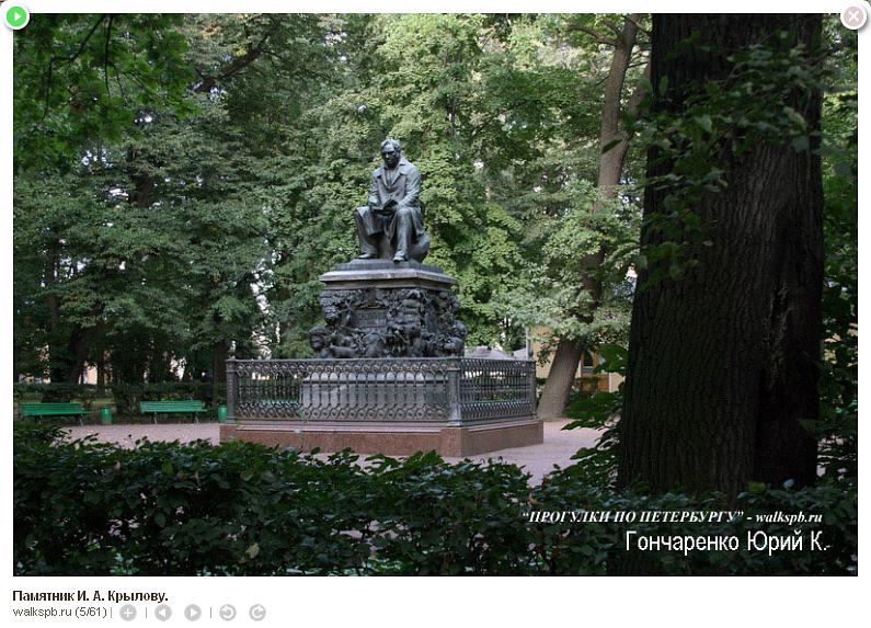 | FSirota писал(а) пн, 26 ноября 2012 20:01 | Памятник Крылову, честно говоря, напоминает надгробие...