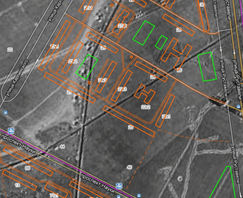 На военной АФС хорошо видны два рва (канавы), которые Х-образно пересекаются севернее нынешнего проспекта Науки. Кстати, нет ли у кого-нибудь сведений, что это за рвы – мелиоративные? или что-то из фортификации?