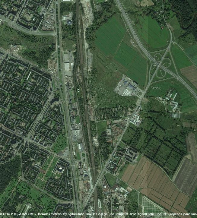 Первое -- глянув на нынешнюю спутниковую карту полей между ж\д и КАДом, севернее Пискаревского, можно видеть 2 прямые полевые дороги. И вот одна из них, как мне кажется, лежит по продолжению трассы Меншиковского. Хотя тут, конечно, может иметь место просто моё желание увидеть то, что хочешь увидеть.