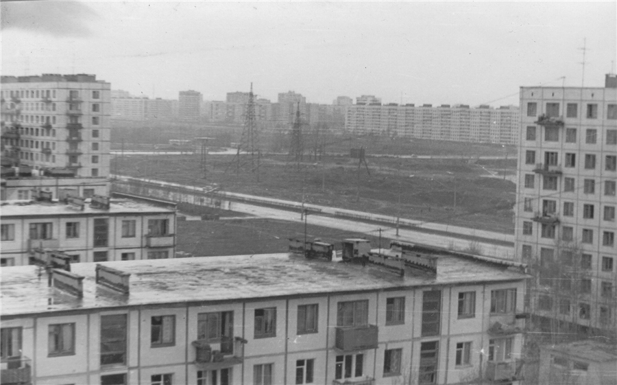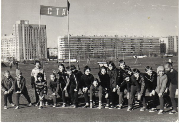 Второй снимок сделан в проезде между домами 88к1 и 86к1 по Луначарского. Виден дом 86к1 и вдалеке восточное крыло дома 82к1. Нет еще квартала с 84-ыми домами, на его месте пустырь с кустарником и лягушачьими болотцами. Перед домом 86к1 виднеется скамейка детской площадки - теперь там стоянка около магазина Пятерочка. В группе школьников стоит, если не ошибаюсь, Юрий Иванович - учитель физкультуры 136 школы (в этом проезде обычно и собирались школьники, перед лыжными уроками физкультуры, которые проходили на Муринском ручье. пара пацанов с санками, значит снимали скорее всего в марте, когда основные занятия по лыжам уже завершились, а снега еще достаточно, чтоб просто покататься, а не сидеть в душном спортзале).