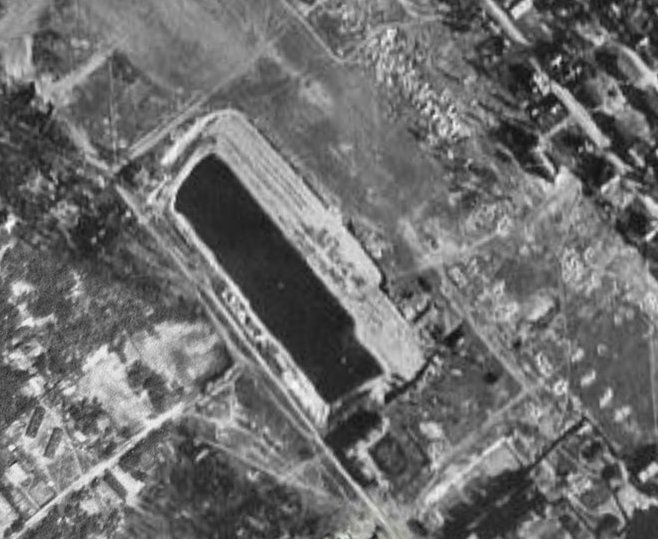 На АФС 1940-х по северо-восточному берегу Бассейки леса уже нет.