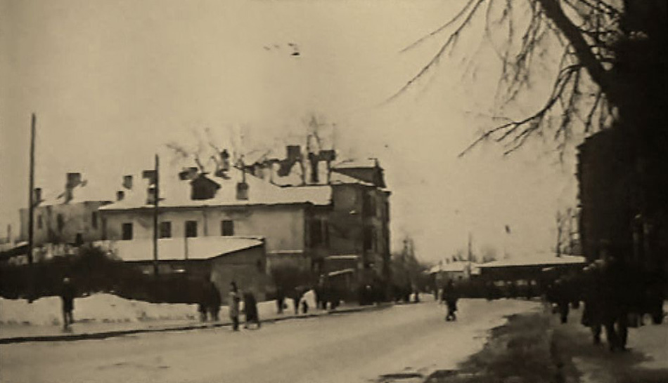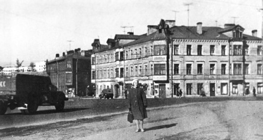 17. Справа 11. На момент фотографирования, фасад этого дома, по сравнению с тем, что видно на АФС 1942 года, уменьшился в три раза. Проезжая часть - свежепроложенный круг пл.Мужества