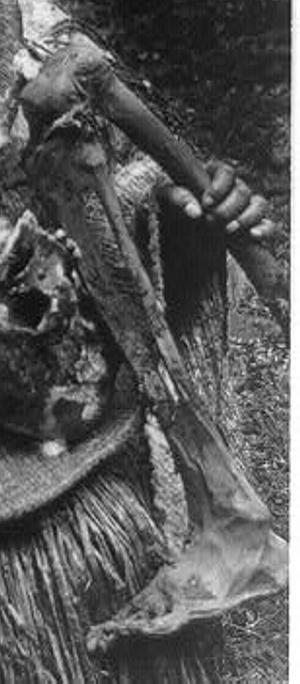 Во всех случаях, кости выставлялись напоказ, особенно черепа. Нога-кость жертвы являлась атрибутом женской власти. То есть, речь шла о матриархальной культуре во время её противодействия, вероятно, с мужской.