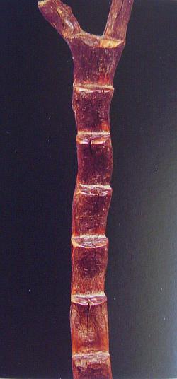 Здесь нужно учитывать еще вот что: понятно, что домик использовался не раз и не два. То есть, он должен был стоять на протяжении хотя бы пары поколений. Конечно, нельзя забывать, что средняя продолжительность жизни тогда была небольшой, но на лет 40-50 домик должен был быть рассчитан. Обычные стволы, зарытые в землю, да еще с нагрузкой, столько не простоят. Чтобы дерево не гнило, его обжигали снаружи. Удобнее и логичнее всего было использовать высоко подрубленные стволы растущих деревьев - и простоит дольше благодаря корневой системе, и работы меньше. И, что характерно, похожая технология использовалась при царившем тогда подсечно-огневом землепашестве (помним, что мы говорим о земледельческой культуре) - только для запашки территорию с порубленными деревьями сжигали, а оставшиеся обугленные пни выкорчевывали после сжигания. А при захоронении территория была ограничена маленькой полянкой, а пень не выкорчевывали после сжигания.