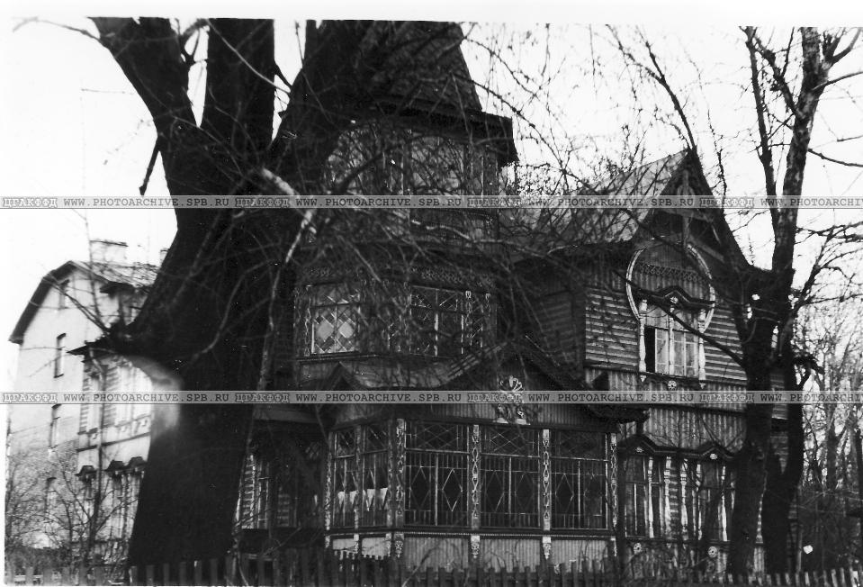 А это Коломяги, но совсем рядом. Подписана Большая Десятинная 5, разобрана в 1995 г., бывш. дача Александрова со служ. корпусом, конец 19 в.