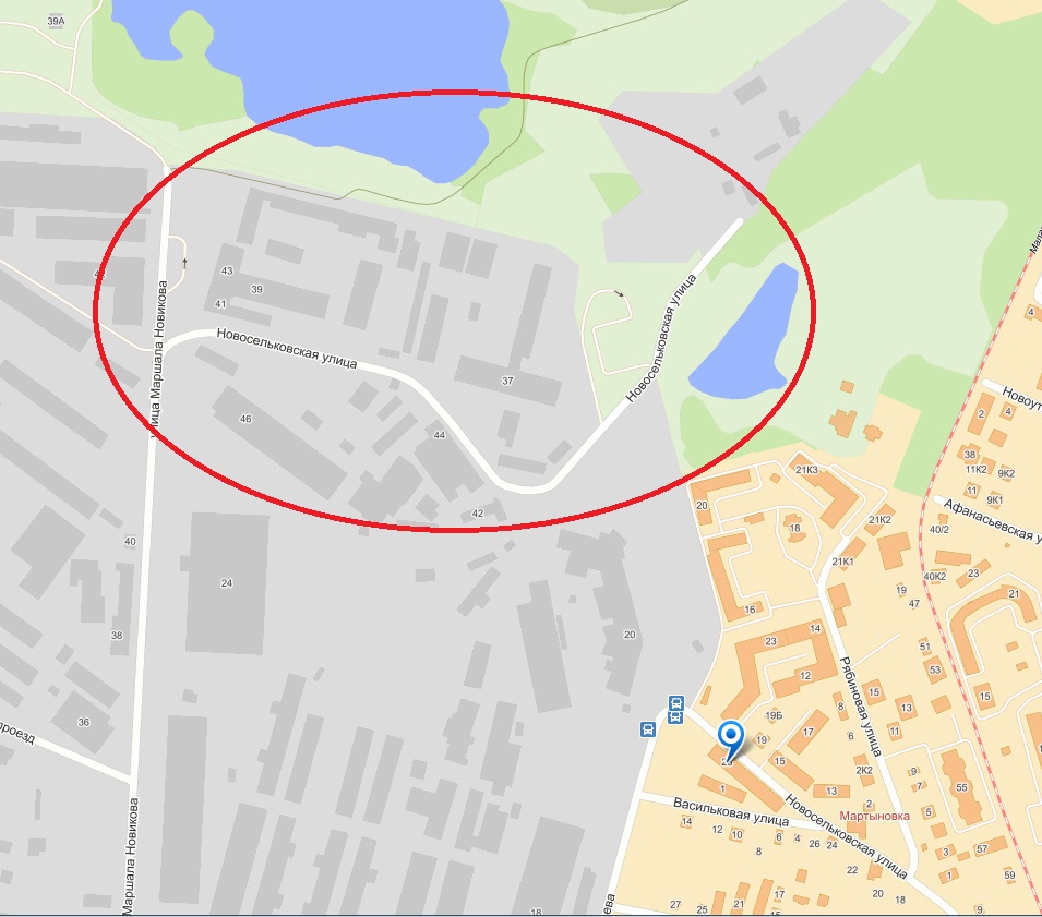 А дело в том, что Новосельковская ныне состоит из двух разных частей, не связанных. Я не мог сразу вспомнить, где эта улица, набрал название улицы в яндекс-картах и попал в красный эллипс