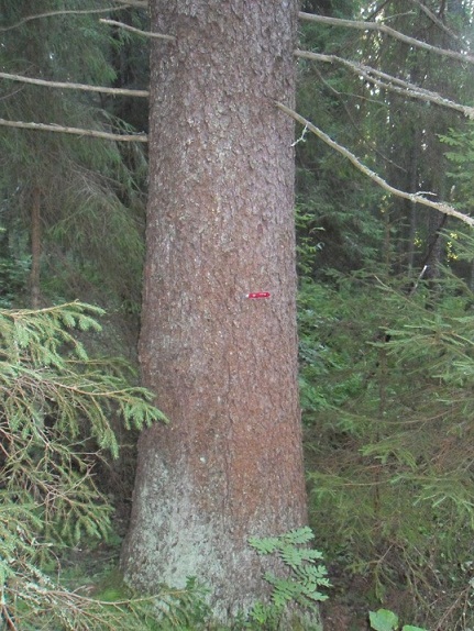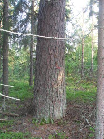 На плане лесонасаждений 1952 года на этом месте лес 120 лет возраста. В настоящее время это зарастающая вырубка. Но по краям , на неудобных склонах остались старые деревья , сосны и ели. Стало быть им лет 170 -180. Для деревьев растущих в естественном лесу, в наших краях - очень не плохо.