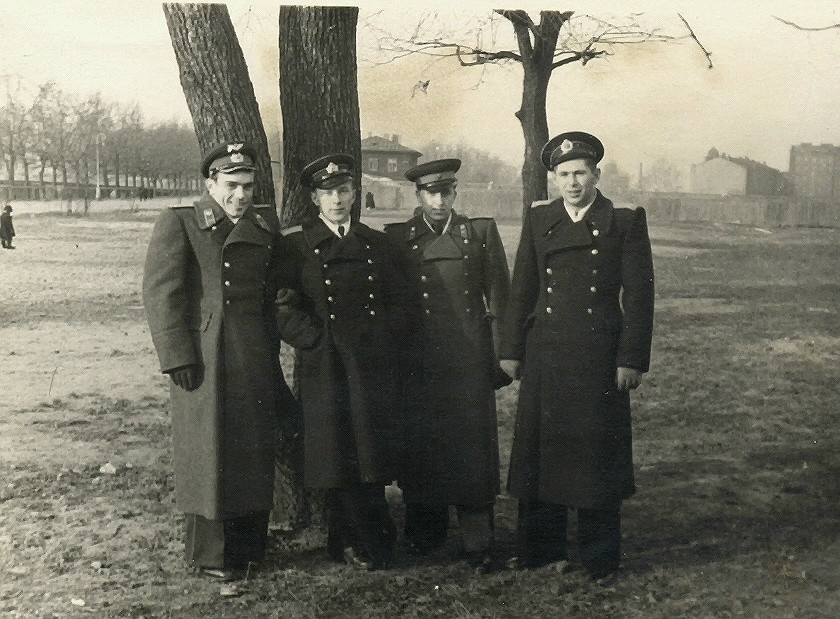 Военные собрались во дворе казарм по Звенигородской ул., дом 5. На заднем плане высокий дом №14.