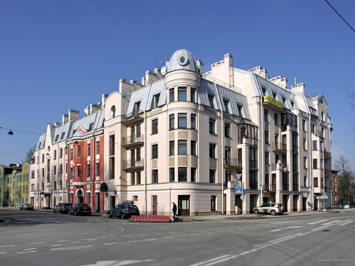 Вот еще новый дом, тоже на Крестовском, даже с грифонами