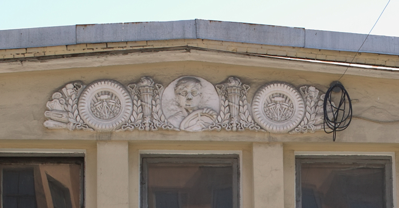 На фронтоне автобазы был своеобразный барельеф.