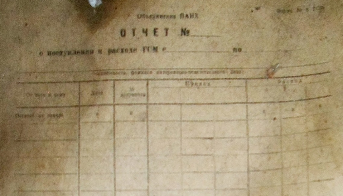 8) Артефакты в заброшенном здании: бланк учёта о поступлении и расхода ГСМ и шкаф: