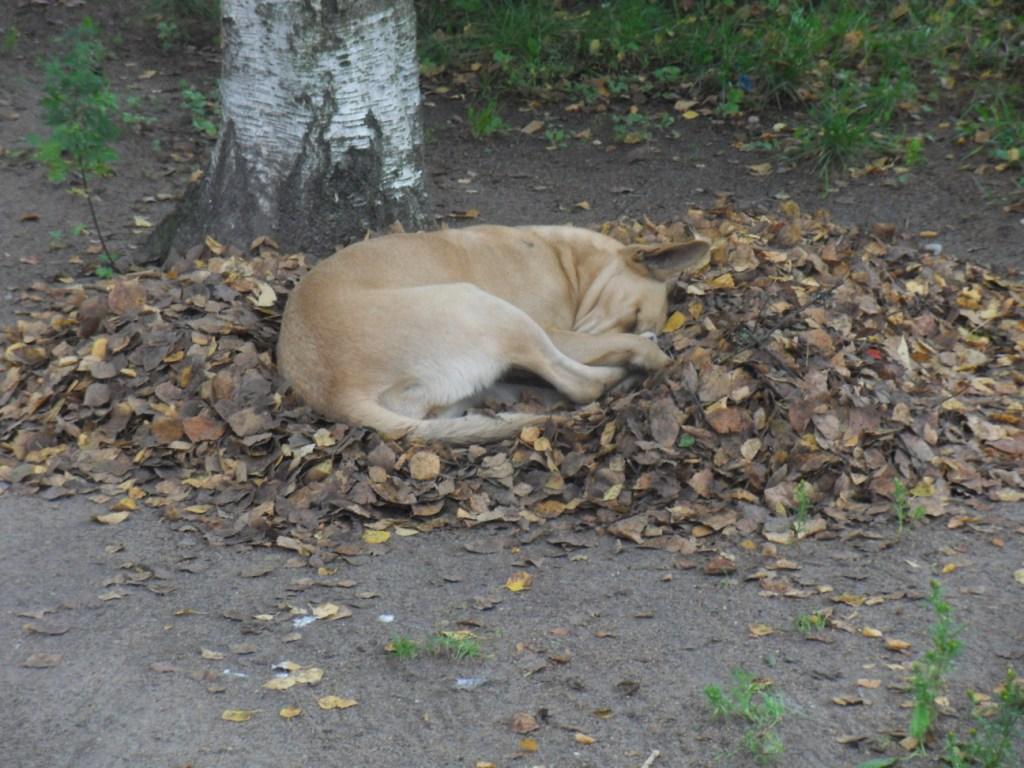 Вчера на Петербургском шоссе в Большом Пулкове видел картину маслом: две бродячие собаки, обхватив передними лапами ствол старого тополя, грызут его кору; причём дерево уже основательно ими ободрано.