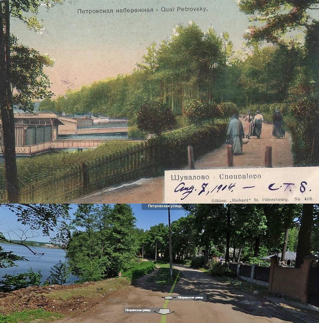 Что касается первой фотографии, то скорее всего это действительно район Шуваловского кладбища. Можно было бы сделать предположение о том, что это около сада Глазунова, но надпись "Шувалово" смушает.
