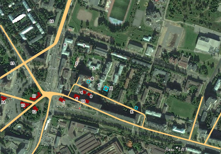Ну, вот. Не откладывая в долгий ящик, переделал наложения. Теперь блокадный колодец - источник жизни указан точно. За одно, южнее дома 10 по Б.Спасской ул.красным кружочком помечено предполагаемое место памятника "любимой собачке Екатерины ".