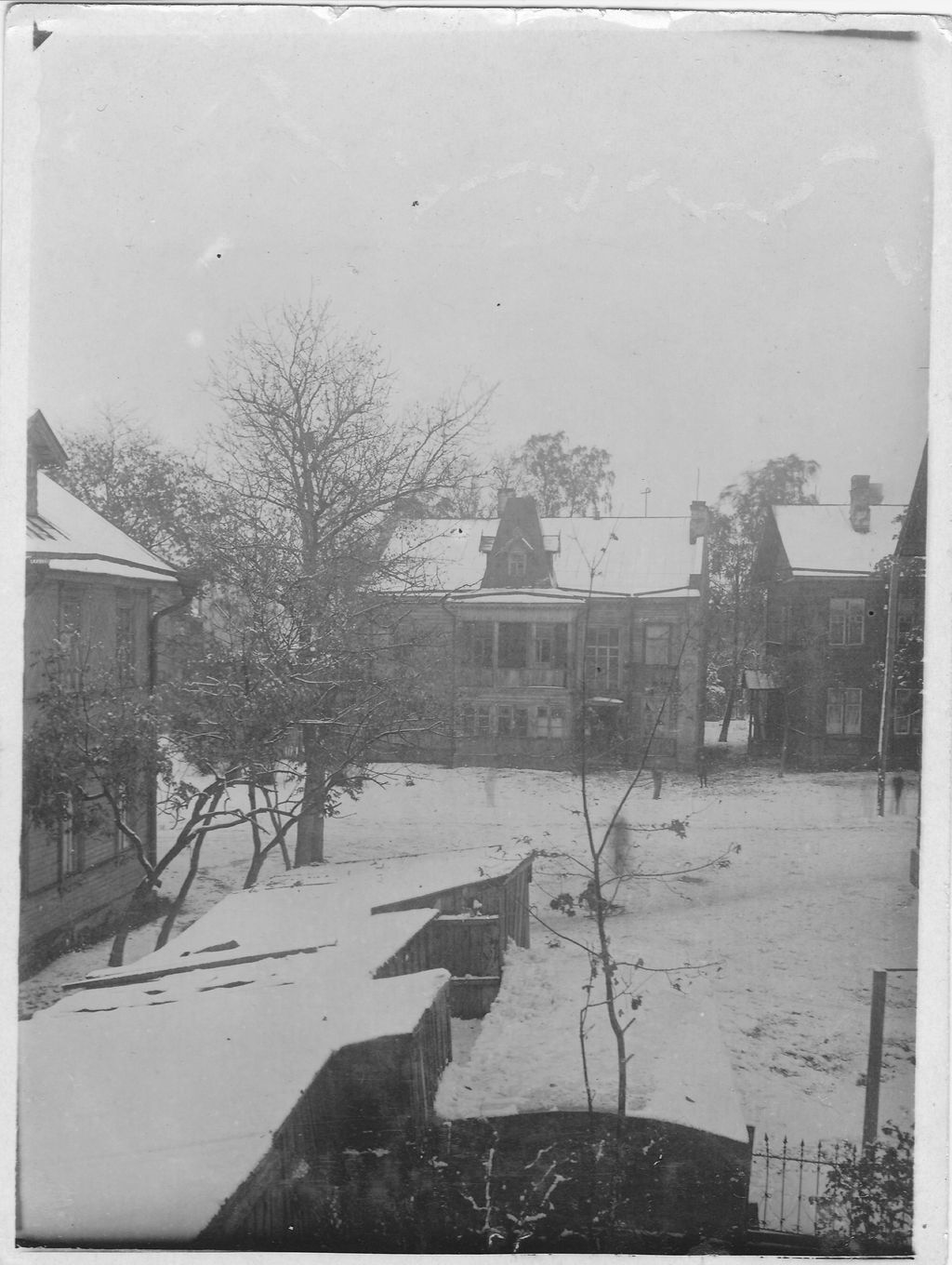 ИМХО на представленных фото мы видим дома по чётной стороне Прибытковской улицы. Справа в кадр попадает деревянный дом, стоящий вплотную к дому 4 по Большой Спасской (на более поздних снимках на его месте видим что-то типа веранды в окружении деревьев)