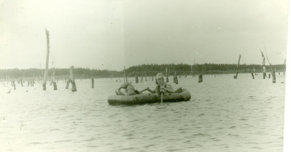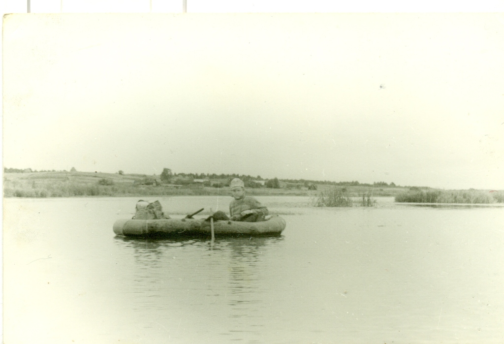 Наплавная переправа в Нестерково. Посередине- "волок" для лодок.
