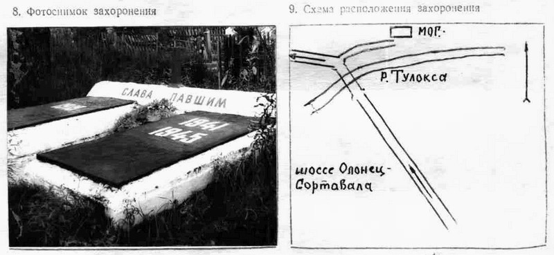 Памятник в 4-х километрах (по дороге) к северу от Тулоксы у переезда — это не братская могила, а обелиск, посвященный Тулоксинской десантной операции 23-27.06.1944 г.: