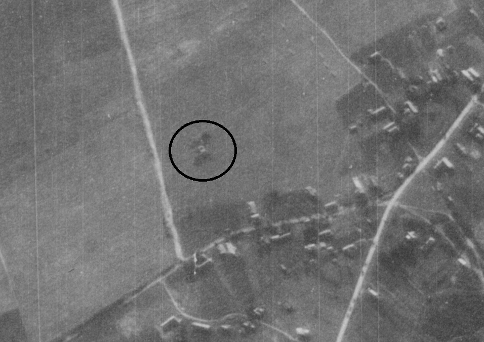 Во-первых, объект в кружочке очень светлый (чуть темнее дороги и примерно как крытые жестью крыши). Во-вторых, он отбрасывает слишком большую тень для танка в окопе и даже для танка вообще (сравните со стожками правее и выше или с объектами на дороге правее и ниже)