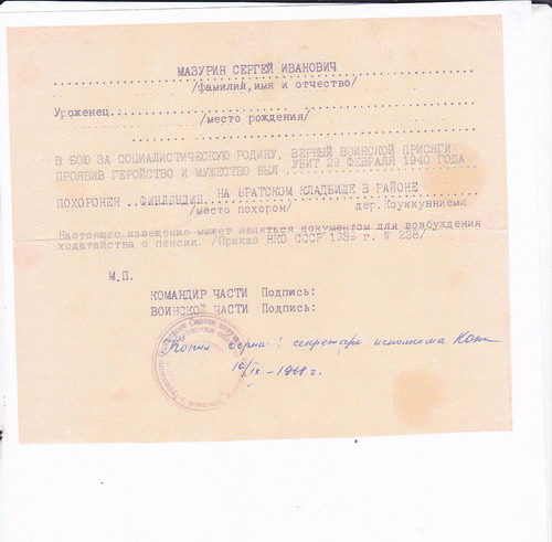 Имеется в наличии справка о захоронении. Перерыл массу сайтов. Нашел несколько упоминаний про эту деревню. И единственную карту.