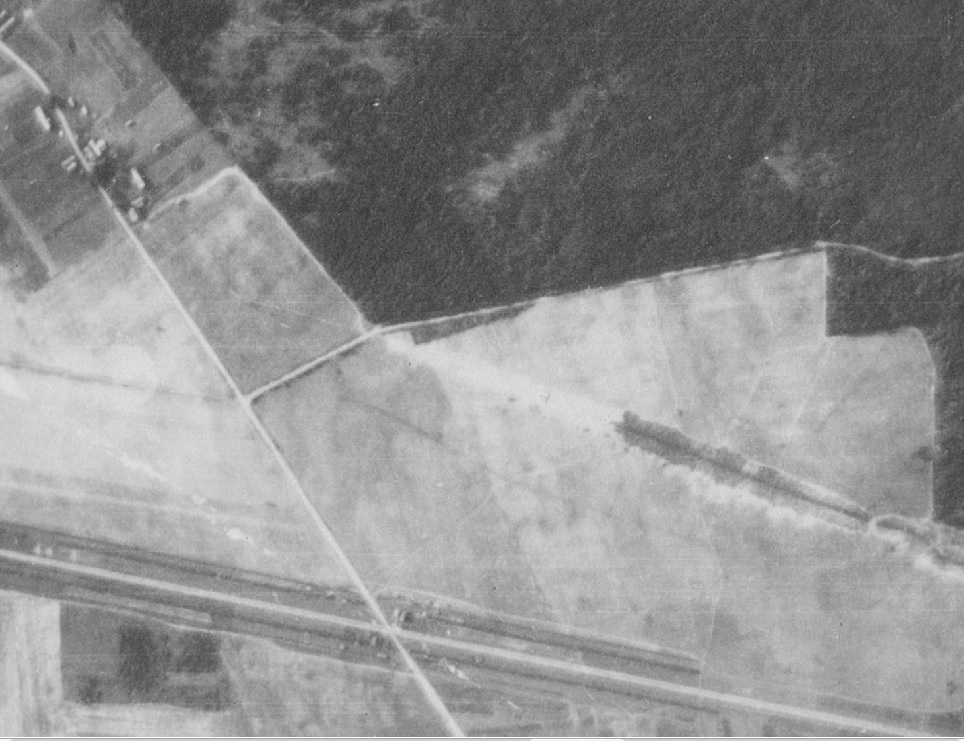 Совершенно верно. Он "пересекает" ЖД в р-не памятника и огибая косогор уходит в сторону нынешнего карьера, заканчиваясь у леса. На гугле это действительно видно.