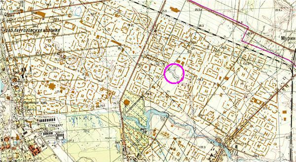 На июль 1982 г. здесь никакого пруда не обозначено. Велись земляные работы.