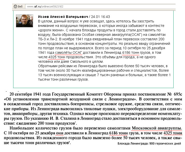 Когда его статья несколько лет назад вышла, я резво взялся было писать комментарии, но потом понял, что ему эта тема совершенно не интересна и анализом данных он не занимался и не будет. А в литературе, даже советской, можно найти всё что угодно и формально он может будет прав. У того же Нейгольдберга я только сейчас заметил, что у него грузы по ледовой дороге в 1941 г возят из Новой Ладоги.