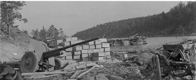 Разгружались баржи наверняка на существующие причалы, но грузились они в лесу с необорудованных берегов. Причалы строили инженерные подразделения. У финнов их фотографий имеется.