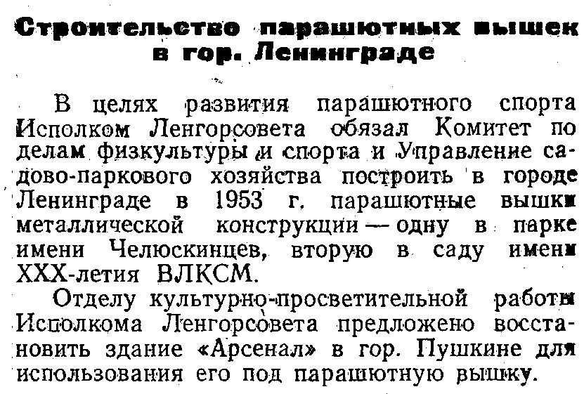Вышка была не в ЦПКО , а в Приморском парке Победы и функционировала
