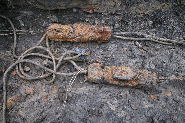 В метрах в трех от края настила у дота, вблизи с загерметизированным стыком телефонных "кабель-каналов", трубу с телефонными проводами пересекли два тонких одножильных проводка в пластиковой изоляции. По их виду (и на тот день, когда это было откопано) решили, что это что-то современное, связанное с расположенной рядом антенной