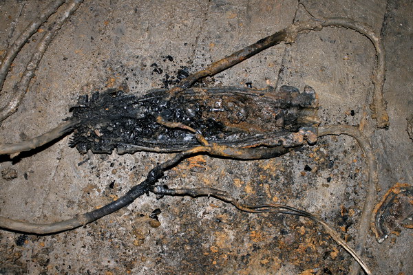 Но в следующий субботник рядом с тонкими проводками был обнаружен толстый кабель в резиновой изоляции, а рядом "змеиный клубок" проводов, две соединительные муфты и кусок битумной заливки, изолирующей скрутку двух концов одного из кабелей